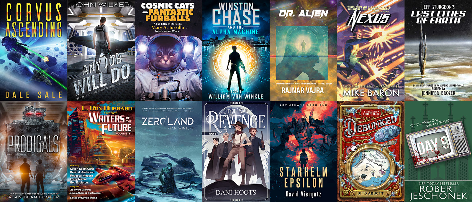 The beautiful anthology, Last Cities of Earth—created by fan-favorite artist Jeff Sturgeon—contains 14 stories set in a fabulous post-apocalyptic future, written by David Gerrold, Mike Resnick, Brenda Cooper, Jody Lynn Nye, Steven L. Sears, Cat Rambo, and others, each accompanied by a full-color painting by Sturgeon. And who doesn’t like cats? Space cats? Mary Turzillo has an entire collection of her Cosmic Cats and Fantastic Furballs. For more great stories, Writers of the Future, volume 31, contains the best short fiction from the winners and finalists of one of the most respected writing contests in the genre.