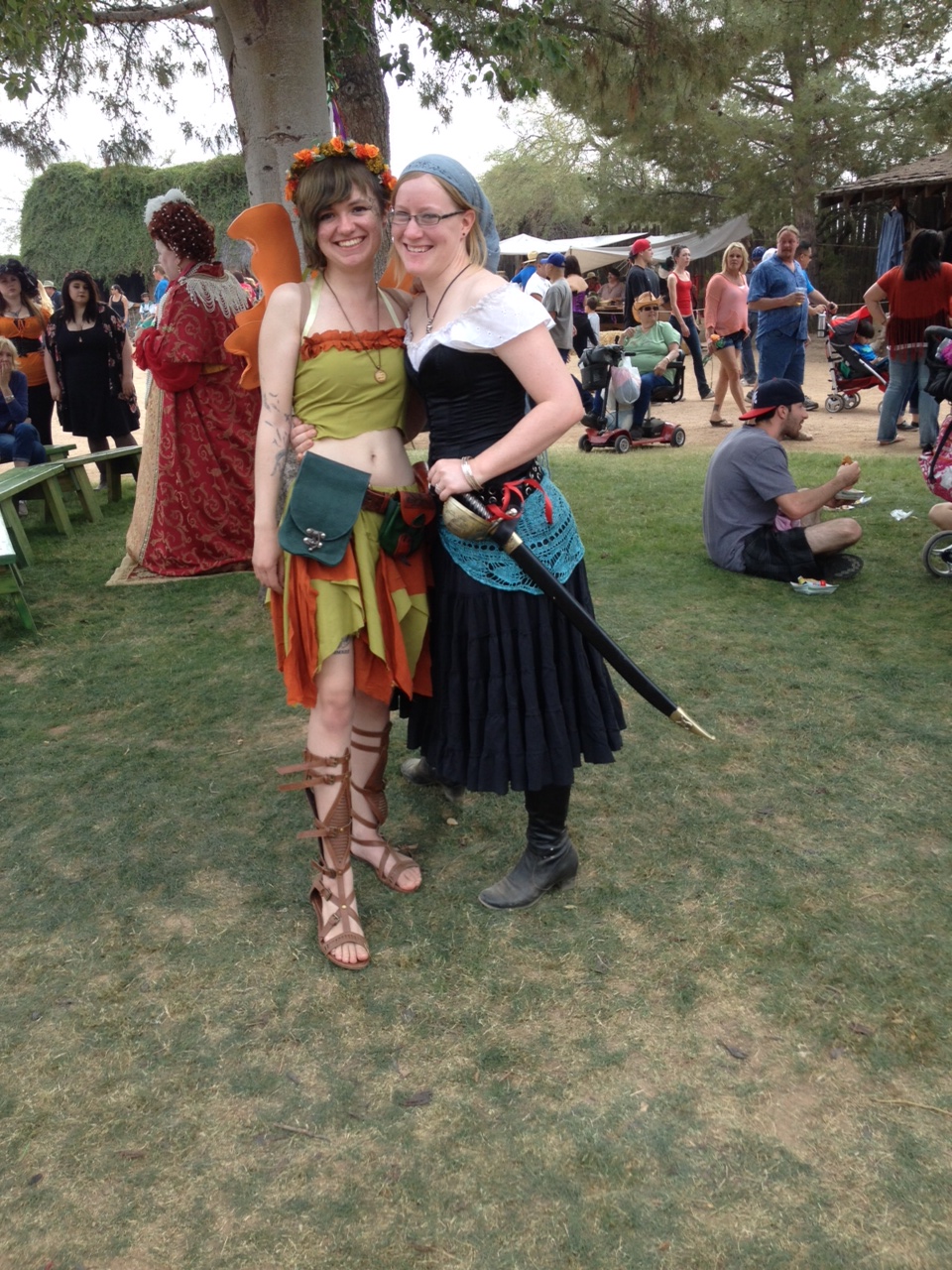 I, of course, dressed up for the faire. I went as a woodland fairy. My friend made me the most awesome wings and they came out FANTASTIC! I got the outfit itself on etsy and the shoes are from Rue 21. The belt and pouches my friend made more for graduation/christmas/birthday. He does amazing leatherwork and needs to open his own shop! My friend went as a pirate, the sword and belt from my collection. Went perfect with her outfit. My husband went as the Dread Pirate Roberts! A lot of people recognized him too, which was great. Got one person yelling Zorro. Idiots.